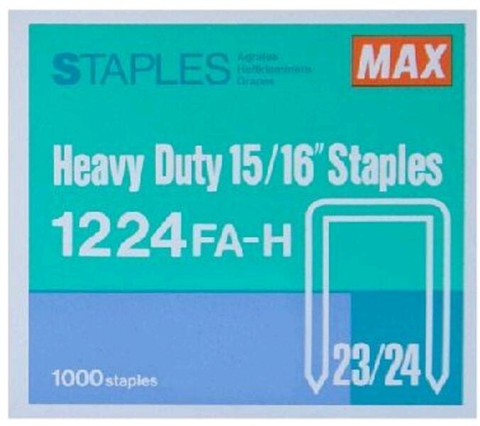 A MAX tűzőgépek ÖRÖK GARANCIÁJA csak MAX kapcsok használata esetén érvényesíthető!Megnevezés: 1224FA-H kapocs23/24szélesség: 11,5 mmmagasság: 24 mmdoboz/db: 1000Az alábbi tűzőgépekhez használható: HD-12N24Gyártó: MAX